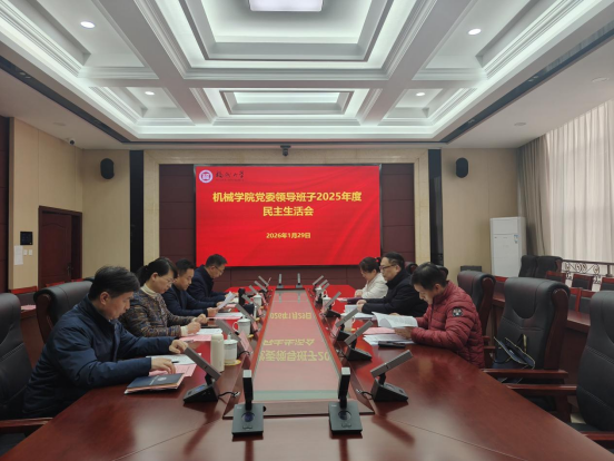 党委领导班子在机械楼南401会议室召开2025年度民主生活会。校党委民主生活会第三督导组组长、副校长杨黄浩及督导组成员到会指导。学院党委领导班子全体成员参会,会议由院党委书记陈伟民主持。