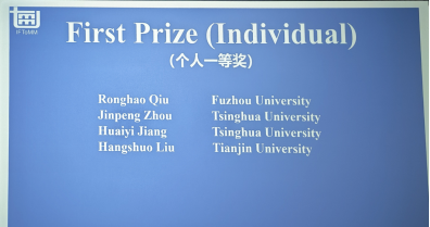 选派陈俊雄、陈文彬与邱榕浩三名同学组成参赛队,由杨富富、张俊、郑荣业、葛姝翌四位老师担任指导教师。备赛及比赛期间,师生团队认真钻研。在正式比赛中,三位同学沉着应对,展现了扎实的专业功底。邱榕浩同学在解题环节逻辑严密、作答准确,在42名海内外参赛选手中脱颖而出,取得了全场个人第一名的成绩。