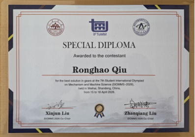 代表队在此次国际赛事中表现突出,荣获团体二等奖。其中,邱榕浩同学以全场总分第一的成绩摘得个人一等奖,并因在答题环节的表现获得特别提名奖。