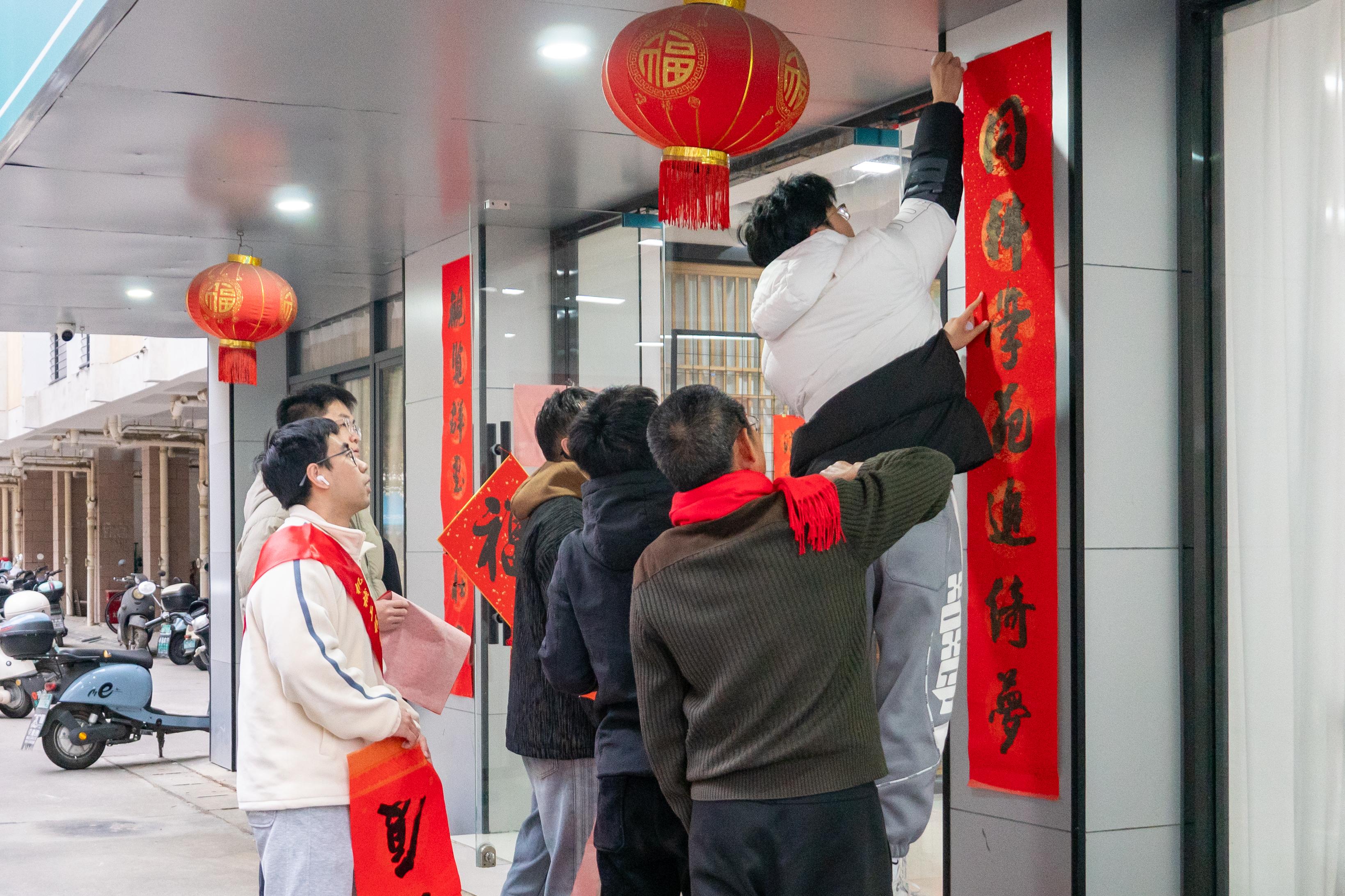 联合举办的“翰墨迎春送福至 春联传情福大福”——老艺协会员进学生社区义写春联活动在一站式学生社区“同观书院”学生活动共享空间拉开帷幕。离退办主任徐宏志,老艺协常务副会长林文泰、副会长兼秘书长翁和,离退办副主任刘卫东、罗维铨,无码 a 片
