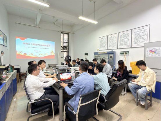 党委副书记谢武以《党的二十届四中全会精神宣讲》为主题,在机械楼南103为流体动力与智能控制福建省重点实验室党支部的全体党员上专题党课。